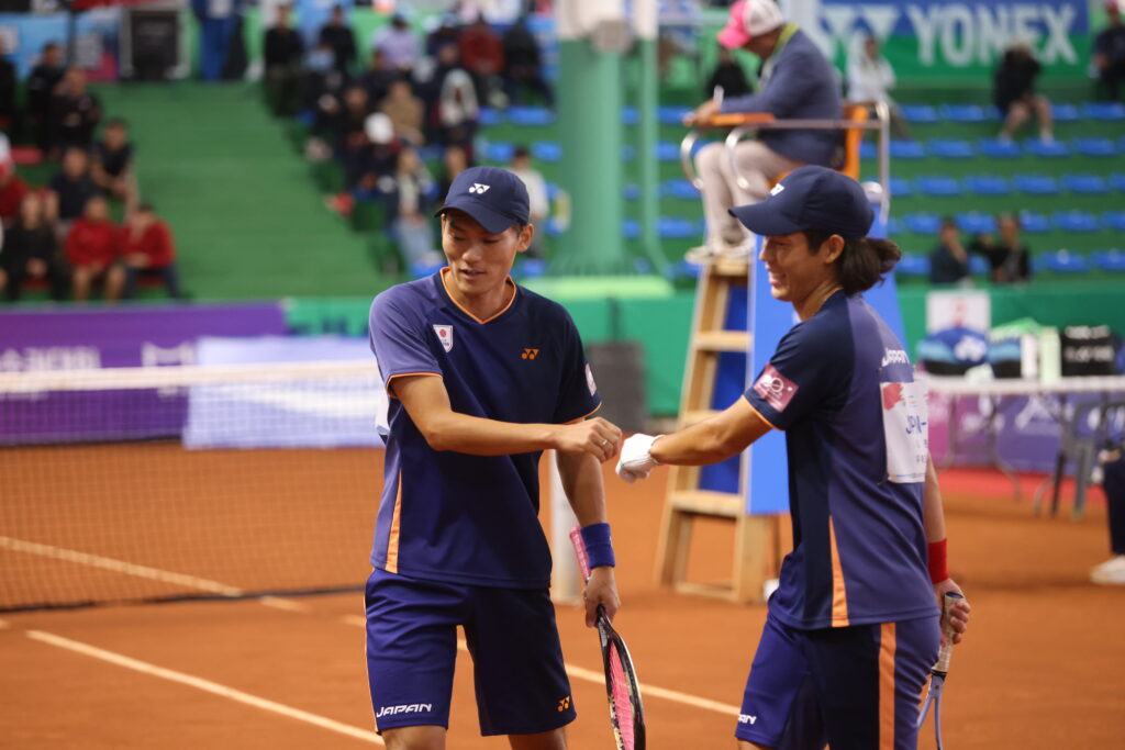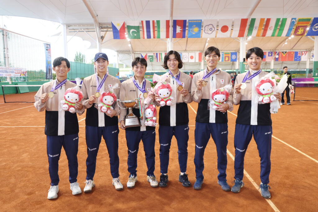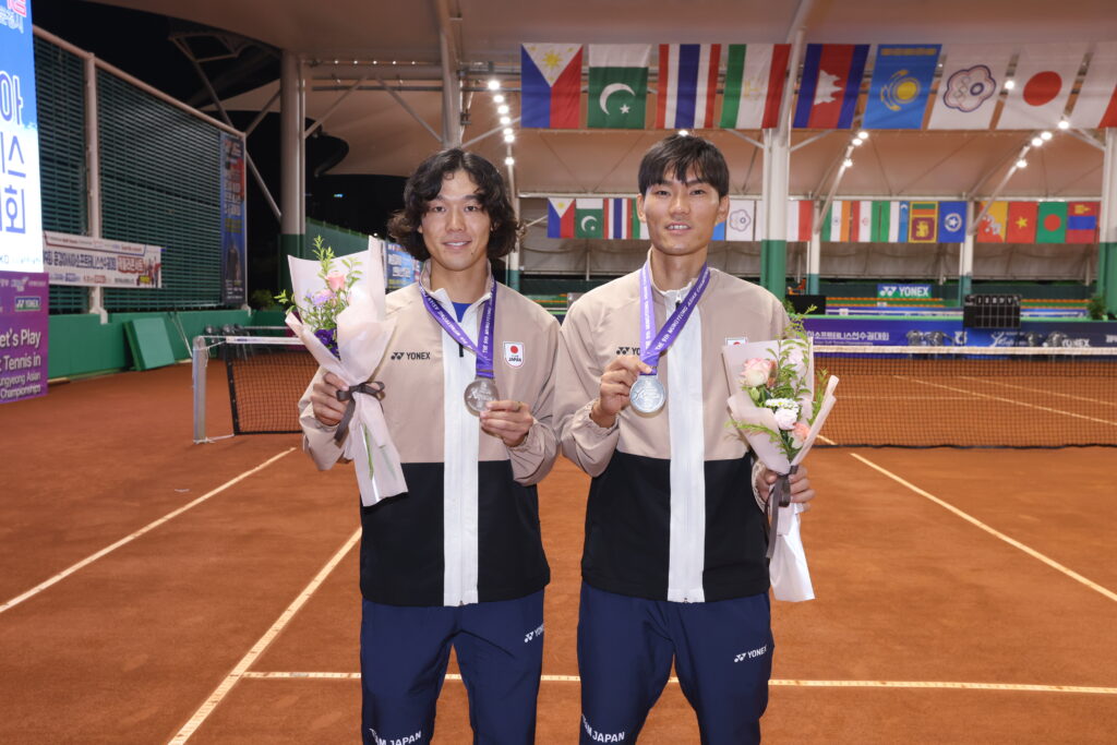 9月中旬に開催された第9回アジアソフトテニス選⼿権⼤会に日本代表として出場した上岡俊介選手、丸山海斗選手がメダルを獲得しましたのでご報告します。