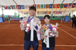 9月中旬に開催された第9回アジアソフトテニス選⼿権⼤会に日本代表として出場した上岡俊介選手、丸山海斗選手がメダルを獲得しましたのでご報告します。